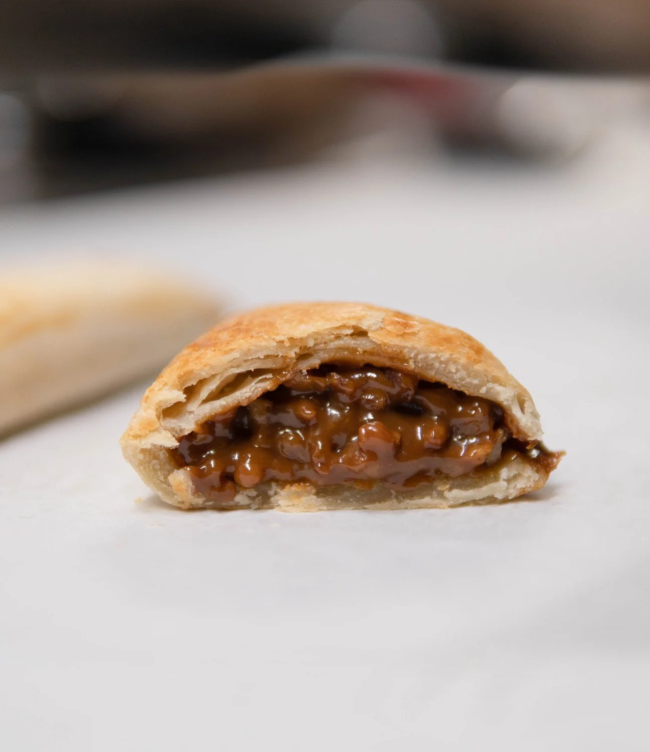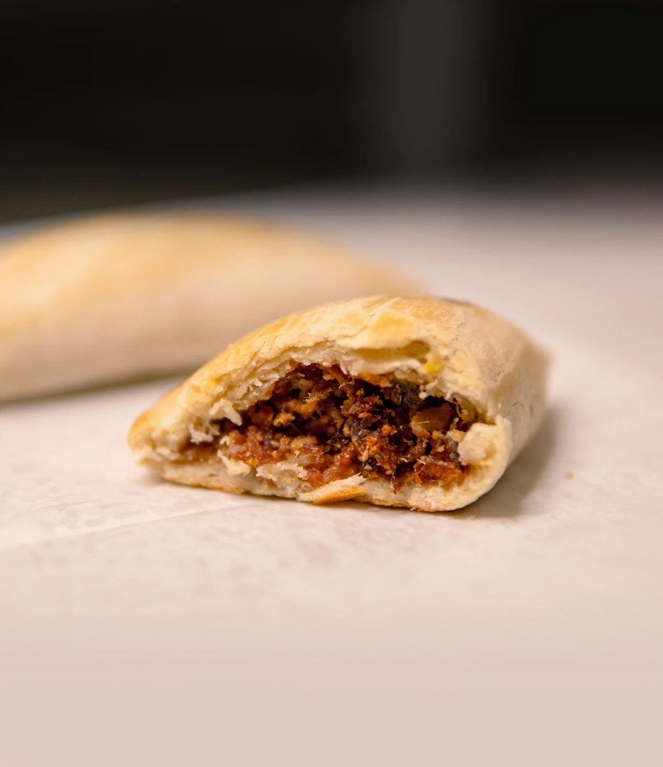 Traditionally seasoned ground beef, onion, golden raisins, smoked red pepper.